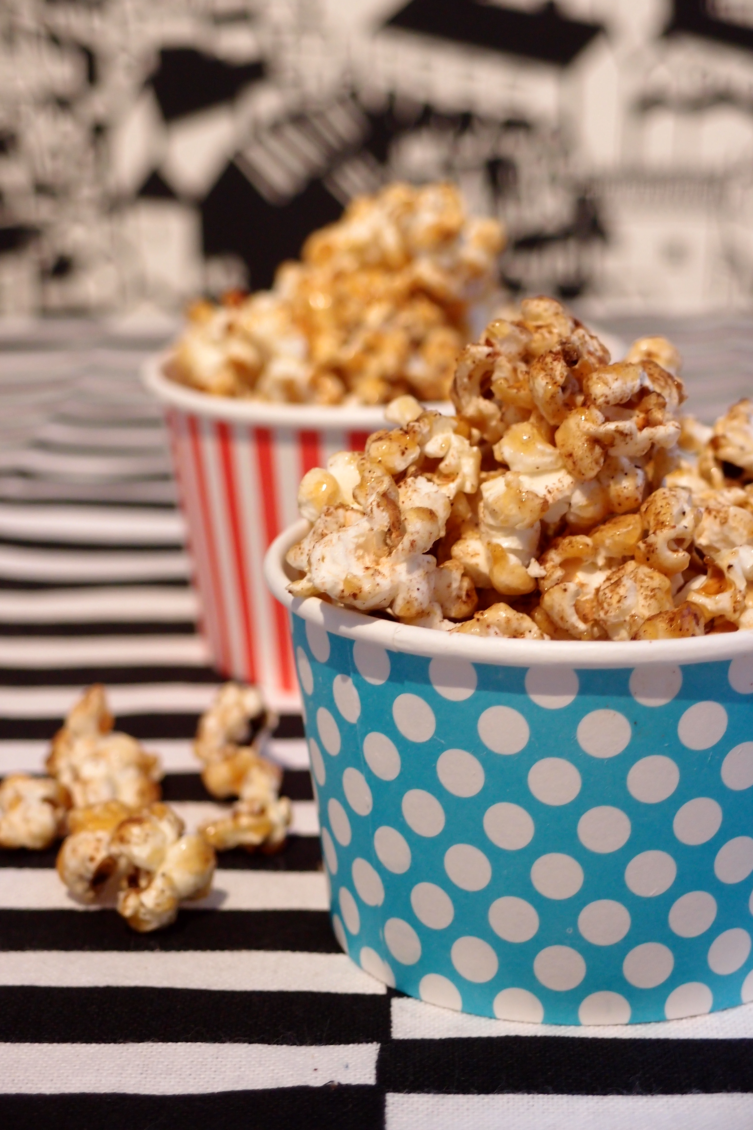 Kanderade popcorn; helgsnacks när det är som bäst. Det mumsade vi på igår kväll. Salt möter sött, krispigt möter segt. Jag pratar om sötsalta popcorn! Originalreceptet har jag fått av min chef, tack!