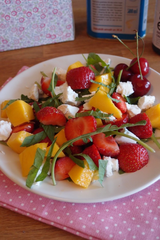 Den här galna värmen vi har haft i sommar har helt klart gjort att jag max velat äta varm mat en gång om dagen, om ens det. Men man kan ju inte bara mula mackor och flingor som lunch- eller middagslösning. En kall, läskande god sallad däremot passar mig perfekt! Jag älksar att blanda ner frukt och bär i mina sallader av den enkla anledningen att det blir saftigt, fräscht och gott.